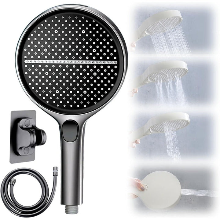 Switch effortlessly with the thumb control between: (1) Continuous Rainfall for a gentle soak, (2) Fine Spray for wide coverage, (3) Strong Pulse for a revitalizing massage, and (4) Pressurized Spray-Gun for a focused, high-power stream.