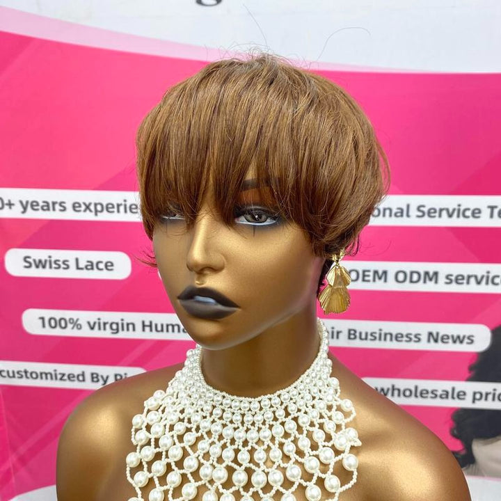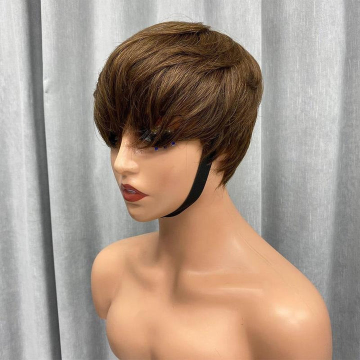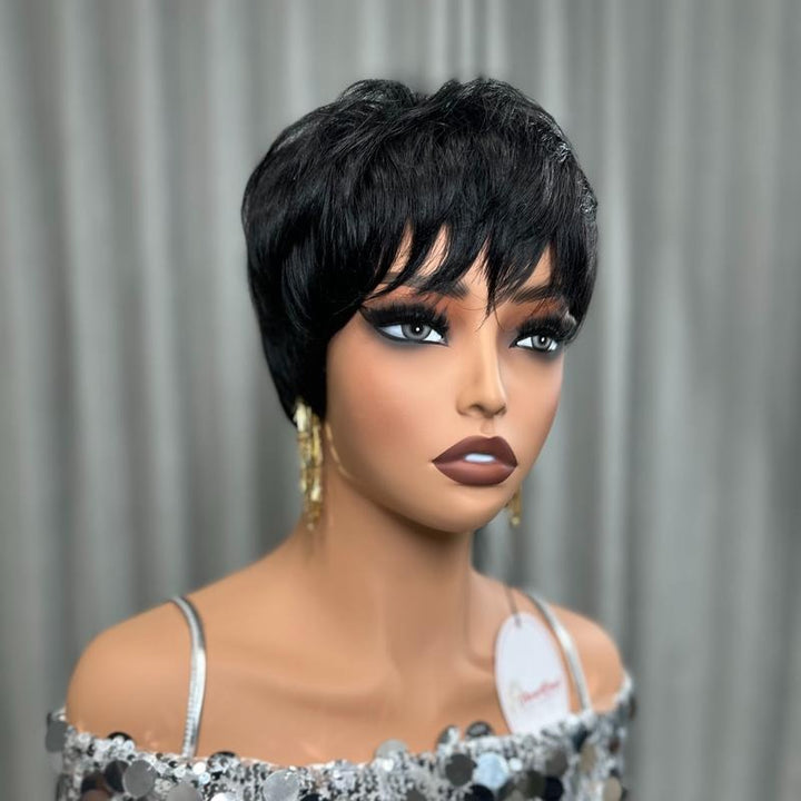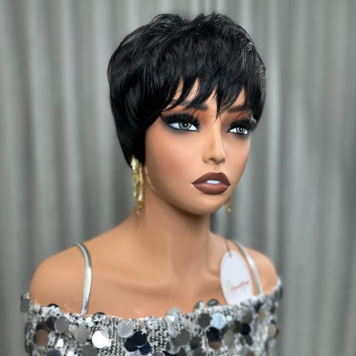 Effortless Style, 100% Human Hair — Natural Pixie Cut Wig with Soft Bangs