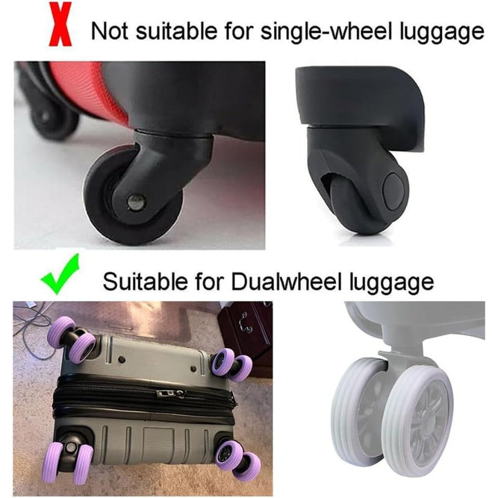 Fits most standard spinner suitcases with dual-wheel rollers and square-edge wheels sized 2.1–2.4 inches (≈ 5.3–6.1 cm). Please ensure your case uses double wheels rather than single casters.