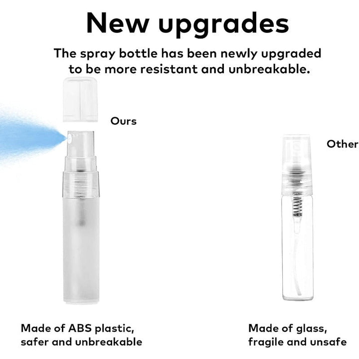 The refillable 5ml spray container is crafted from reinforced ABS plastic—offering a shatterproof, leak-resistant alternative to glass bottles.